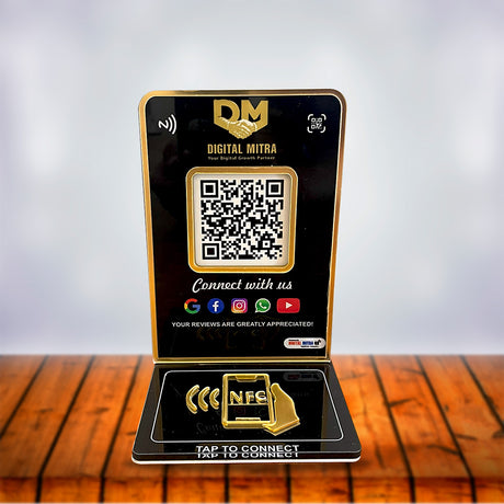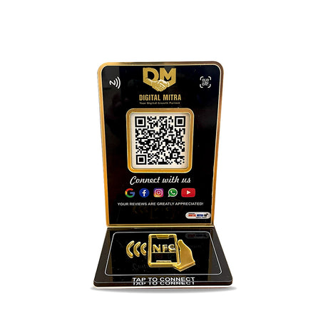 Premium All In One Smart NFC Standee - with 3D Golden Acrylic Logo