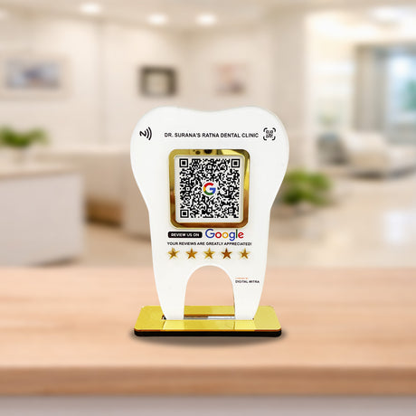 Premium - Dental Tooth Shaped NFC Single QR Standee - Google Review | Instagram | UPI