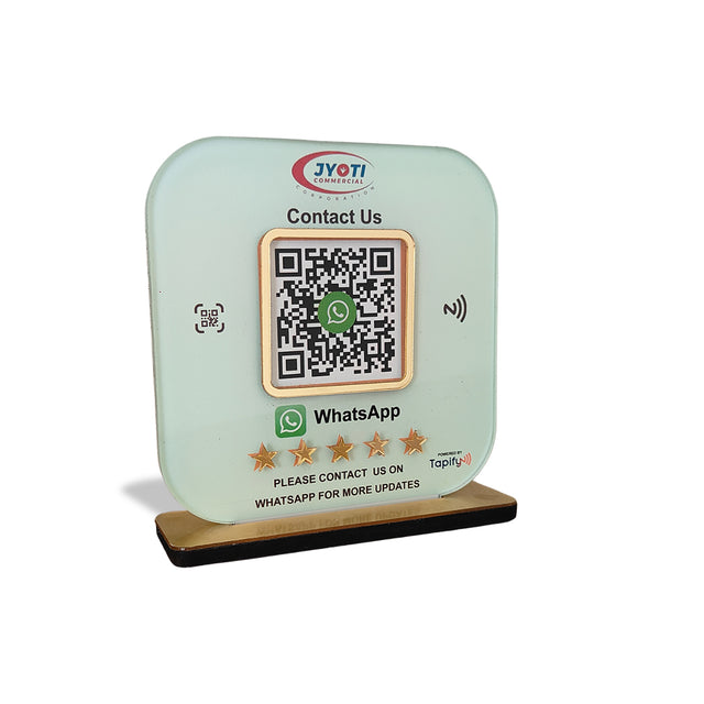 NFC cards/Standee work by storing a URL that links to your Contact Information, Google My Business Profile, Social Media Profiles etc.