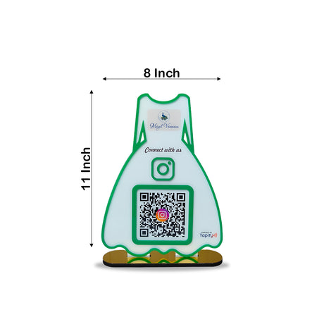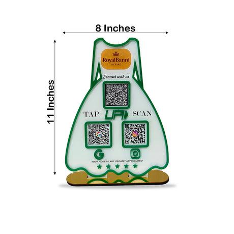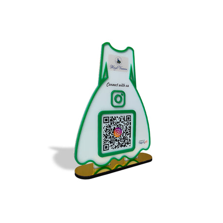 Ladies Gown Smart NFC 1 QR Tabletop Standee – For Boutiques & Garment Shops | White Colour