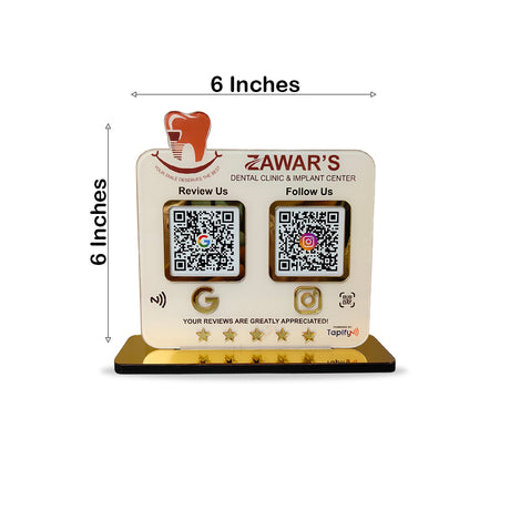 Tooth Shape - Smart NFC 2QR Table Top Standee - W&P Colour
