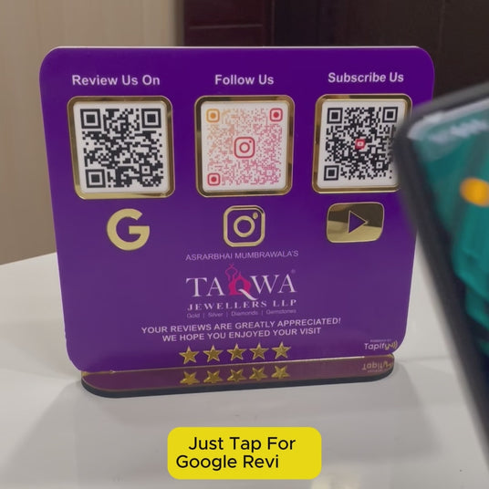 NFC cards/Standee work by storing a URL that links to your Contact Information, Google My Business Profile, Social Media Profiles etc.