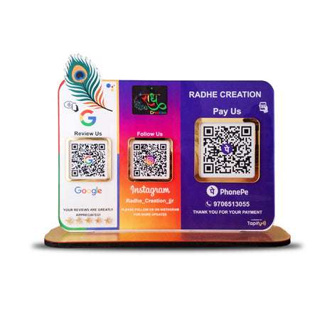 Mor Pankh Cutout Premium Smart NFC 3QR Table Top Standee | Social Media Theme Edition