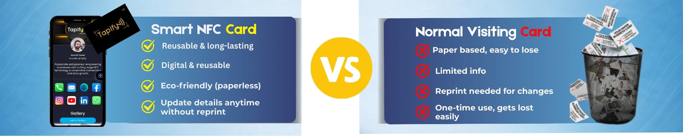 NFC cards/Standee work by storing a URL that links to your Contact Information, Google My Business Profile, Social Media Profiles etc.