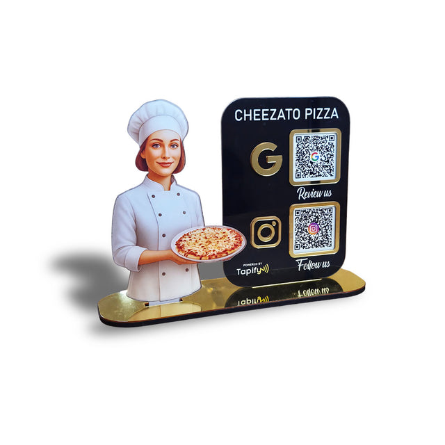 Chef Cutout Smart NFC 2QR Standee - For Pizza Outlet